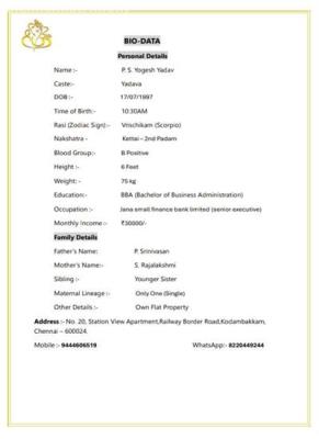 Father died in recently.other housewife. Only one sister. Unmarried. |